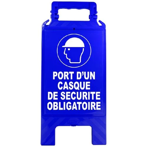 Le chevalet d’obligation port de casque de sécuritéde la marqueNovaps’utilisent tout aussi bien en intérieur qu’en extérieurs, c’est un outil temporaire et pliable.Les messages affichés sur ce chevalet se lisent très facilement grâce à sa large surface d’impression, sa conception avec renforts de maintien et sa large ouverture lui procure une robustesse et une excellente stabilité.Il est également possible de les verrouiller en position ouverte ou fermée et enfin, ses crochets permettent une mise en place de chaîne de signalisation.
