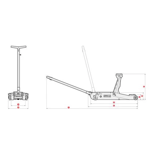 - Possède une plus grande largeur de voie pour une plus grande stabilité. La poignée ergonomique permet une manipulation depuis n’importe quelle position. Les roues sont plus grandes qu’un modèle classique pour une meilleure mobilité et un meilleur soutien sur les surfaces inégales. Ces roues sont faites en polyamide afin d’améliorer la maniabilité, ne pas endommager le sol, ne pas rouiller tout en étant silencieuses. L’accessibilité est aisée grâce à un châssis très bas sur les modèles 2 tonnes (le point le plus bas est de 95 mm)