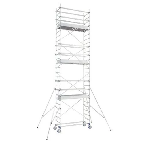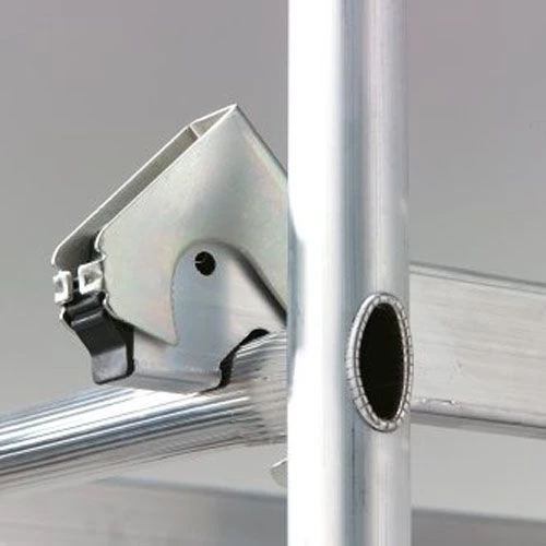 L’échafaudage CROSS 180 de la marque Tubesca-Comabi est un outil fabriqué en aluminium et destiné aux usages intensifs, tout en étant léger et facile à déplacer sur les sols plats et dénivelés. Il est doté de quatre roues équipées d’un système de blocage bi-directionnel pour assurer la stabilité. Ces roues sont réglables en hauteur individuellement, cela sur une course de 200 mm avec un réglage pré-programmé tous les 1,25 mm. Pour maximiser la sécurité de l’utilisateur, les lisses et les sous-lisses de cet échafaudage sont dotés de mâchoires crantées qui se mettent en place automatiquement lors de la pose, ce qui garantit une liaison anti-chute très fiable. Les planchers sont munis de poignées de prise en main qui simplifient le transport et le rangement de cet outil.