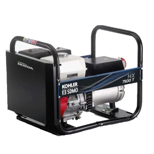 Le groupe électrogène HX 7500 T C5 de la marque Kohler-SDMO est doté d’un moteur performant Honda délivrant une puissance jusqu’à 5700 W. Il est facile à démarrer grâce à son moteur essence et bénéficie d’une faible consommation de 2,50 litre/heure.