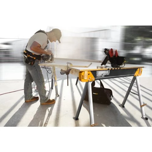 Le tréteau C500 de la marque ToughBuilt est une table pour chevalet et chantier robuste tout en acier de haute qualité. Avec une capacité de 1000 kg par paire, il offre une valeur inégalée. Il est conçu avec des bras de support 2×4 qui permettent de transformer 2 chevalets de sciage en une table de chantier. Il est également doté de chevilles de support permettant un stockage vertical des matériaux, des pieds stables à plier ainsi qu’une poignée de transport facile. Pour plus de sécurité et de confort, le tréteau dispose de bords roulés.