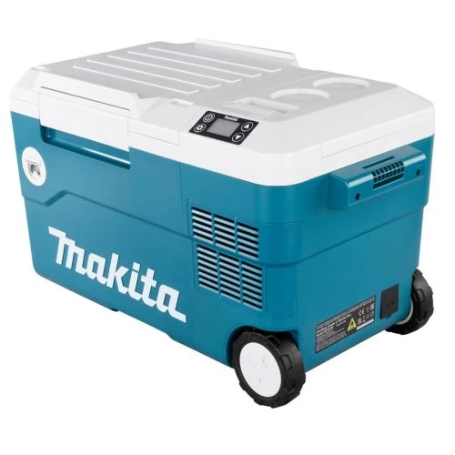 Ce pack de glacière/réchaud 18 V DCW180Z de Makita est idéal pour maintenir le repas chaud ou frais, et est très pratique pour tout déplacement. Cette glacière peut contenir jusqu’à 4 bouteilles en plastique de 2 L ou 20 bouteilles en plastique de 500 ml. De plus, elle a d’excellente puissance de refroidissement grâce au compresseur intégré. Elle possède également un affichage LED permettant de savoir la température intérieure et le niveau de charge des batteries ainsi qu’un ouvre-bouteille à l’extrémité.