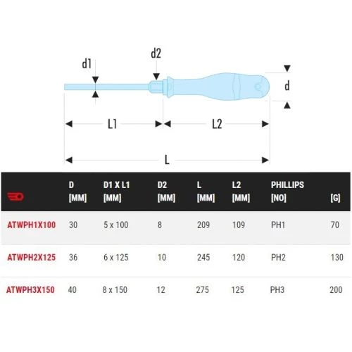 Un tournevis puissant qui permet de dévisser aisement. Le manche est fabriqué à partir des matériaux Soft Grip souples et résistants aux produits chimiques pour plus d’adhérence.