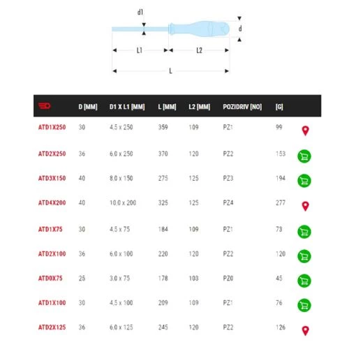 Ce tournevis Protwist® à lame ronde ATD de la marque Facom est utilisé pour le vissage et le devissage des vis cruciformes Pozidriv®. De plus, la manche Soft Grip offre plus de confort lors de l’utilisation. Il est doté d’une lame 4 fois plus résistante à la corrosion.
